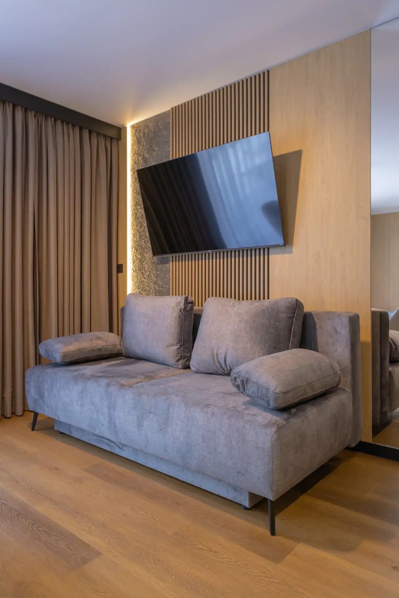 Ponadto znajdziesz tu lodówkę, zmywarkę, płytę indukcyjną, sztućce i pełną zastawę stołową. W każdym apartamencie znajdziesz duży TV z kanałami telewizyjnymi i Netflixem.