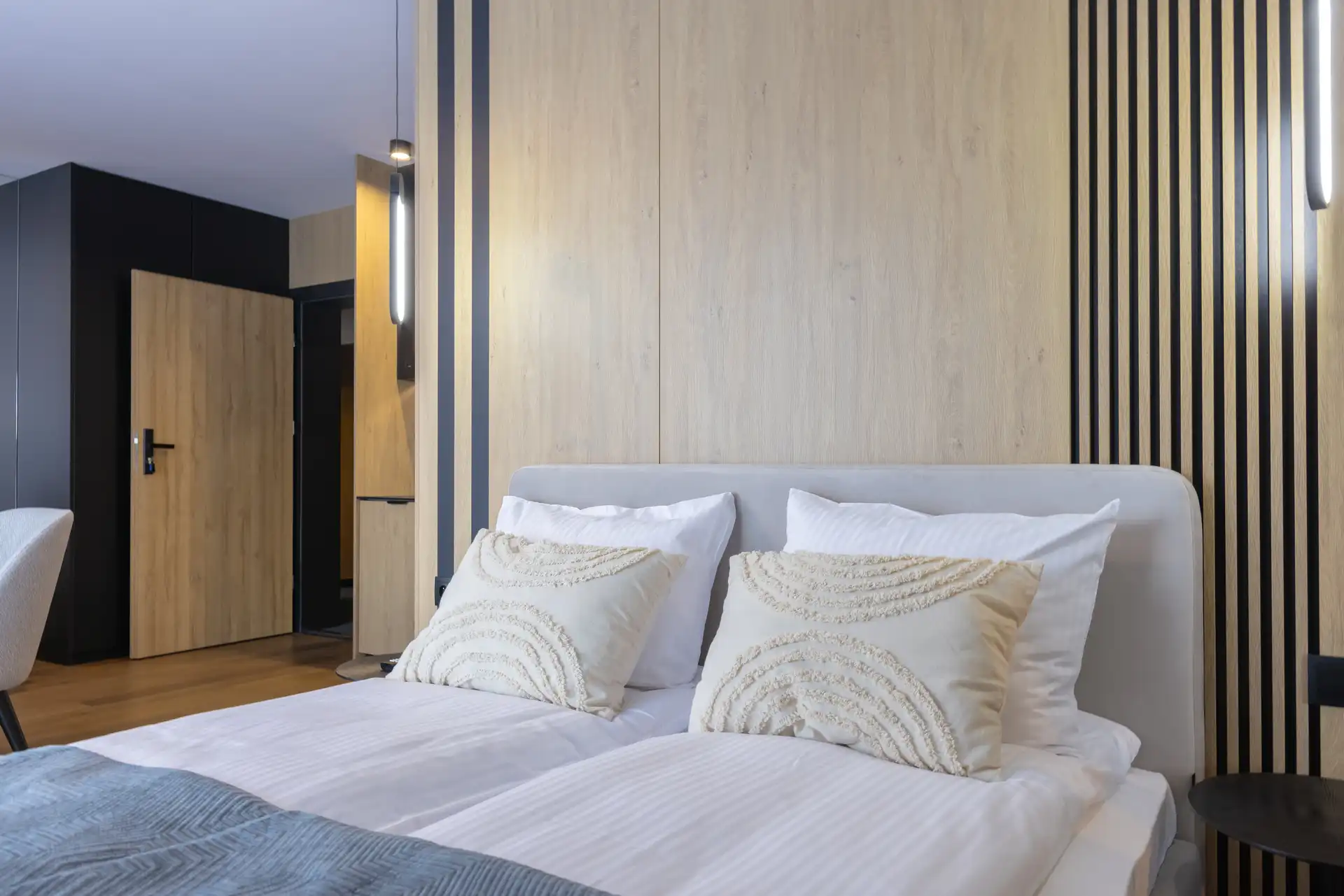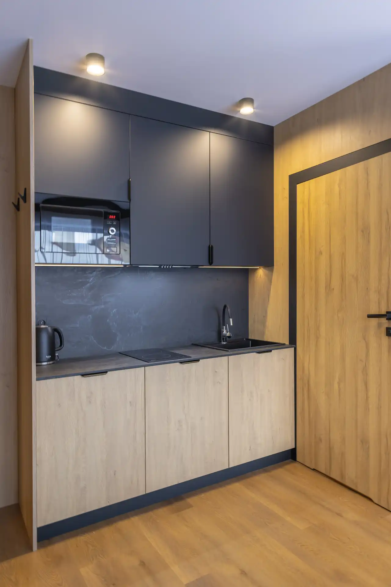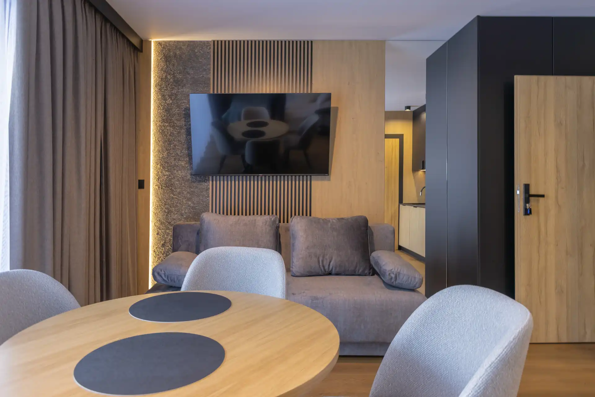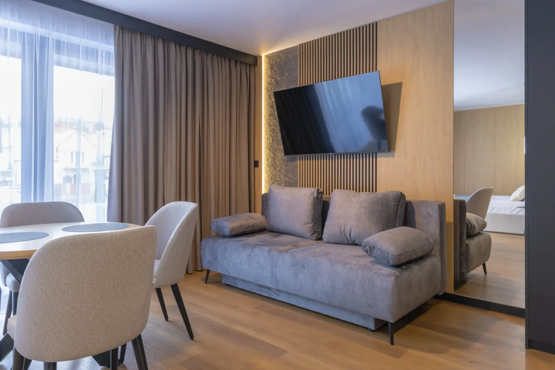 Każdy apartament to duża, świetnie wyposażona przestrzeń z aneksem kuchennym dla komfortu i wygody pobytu.